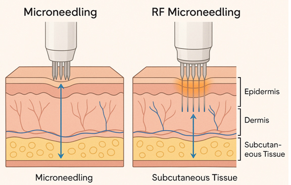 • Microneedling: Creates controlled micro-injuries to stimulate natural healing.